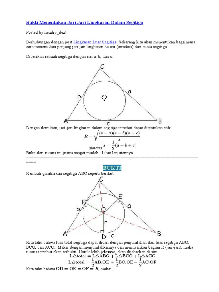 Bukti Menentukan Jari Jari Lingkaran Dalam Segitig1 Pdf